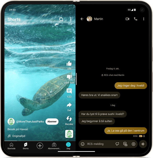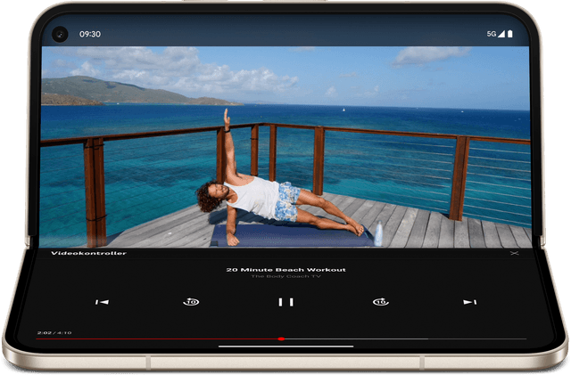 Placér din Pixel 9 Pro Fold på en overflade i laptoptilstand, så du kan se din yndlingsunderholdning på en nem og bekvem måde