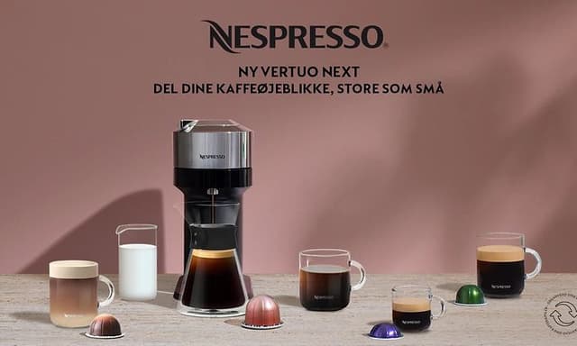 Den næste store kop med ny Vertuo Next er her! Moderne teknologi møder kvalitetskaffe. Ny generations Nespresso kaffemaskiner brygger alt fra en hel kande kaffe til at dele, til en stor kop eller en lille espresso til at nyde alene.