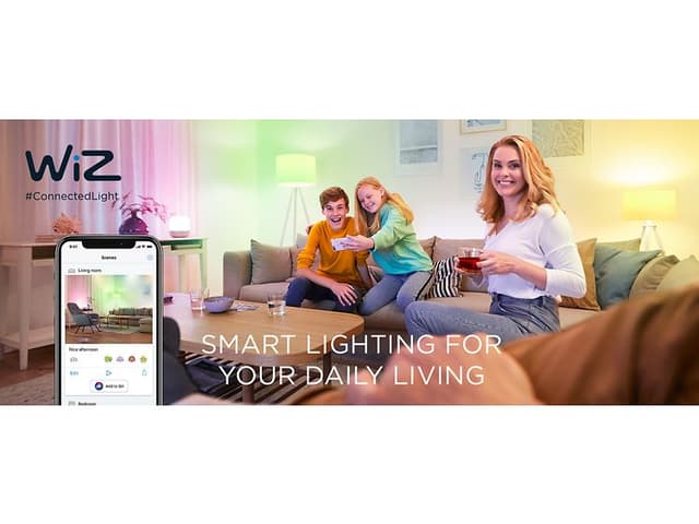 WiZ Connected består af smarte pærer og tilbehør, der er let at installere, og giver dig mulighed for at opleve fordelene med smart belysning. Skru en WiZ-pære i din lampe, download WiZ-appen og nyd din nye smart belysning.