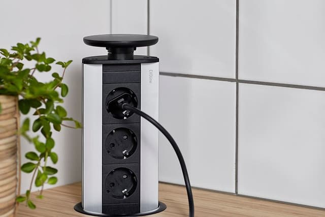 Blandt køkkenets stikkontakter findes også pop-up-versionen. Den fungerer godt, når du vil udnytte pladsen i dit køkken optimalt, og samtidig giver den dig op til tre strømudtag.