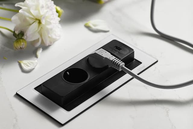 Godt design findes ofte i detaljerne. Glem ikke at overveje placering af stikkontakter i køkkenet eller bryggerset, når du er i planlægningsfasen. Skræddersy dit køkken med stikkontakter, som sidder nøjagtig dér, hvor du har brug for dem, og få dem til at matche farverne i dit interiør. Øg antallet af disponible stikkontakter – eksempelvis ved at gemme pop-up-stikkontakter i bordpladen.