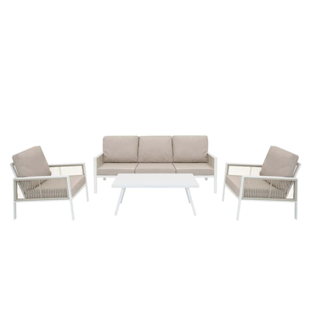 tectake Lounge-sæt Eivissa i reb-design med XXL-polstring 64 x 64 x 78.5 cm Natur