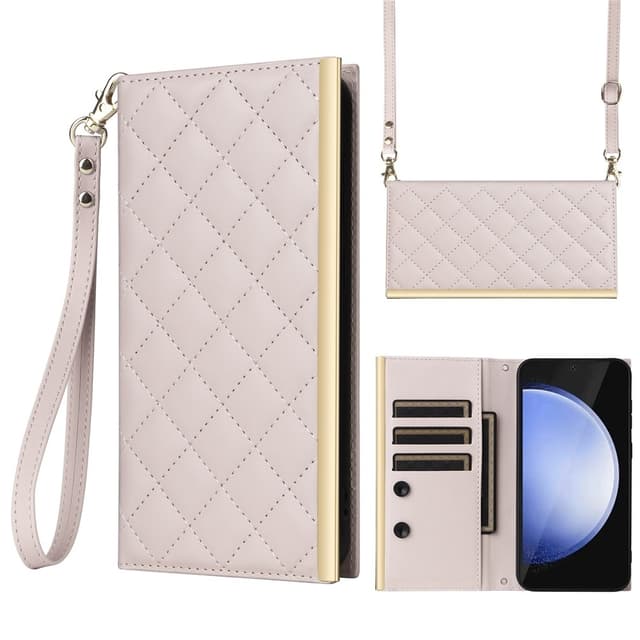 Dette er et Marketplace-produkt. Et produkt, som sælges af vores partner og kun er tilgængeligt i netbutikken. Hvis du ønsker at returnere et Marketplace-produkt, skal du kontakte den partner, som har solgt produktet. Produktet kan ikke sendes retur til Elgiganten eller returneres i vores butikker. Elgiganten A/S er alene formidler af produktet. Aftaleparter og sælger af produktet er:128.-102.-Ekskl. momsKun online | Leveret af vores Partner769546SKALO Samsung S25 FE Quiltet skulderrem med guldkant Flip Cover - Beige