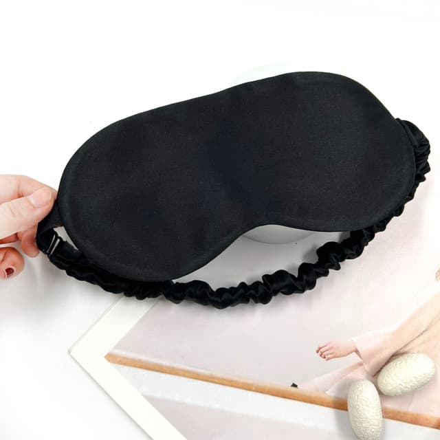 Silkesøvnmaske til kvinder og mænd, blød øjenmaske til at sove i Sort
