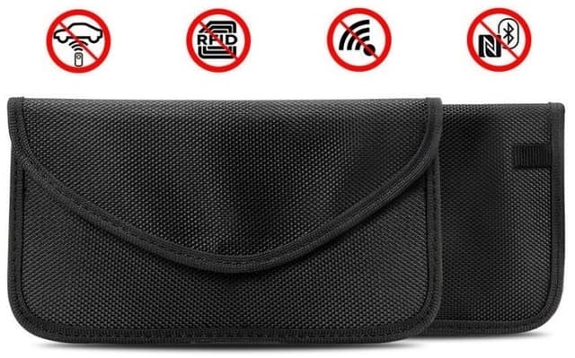 Svart taske med RFID-beskyttelse til kort, telefon, bilnøgler mv.