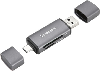 Sandstrøm 2-i-1 USB-C/USB-A SD-kortlæser