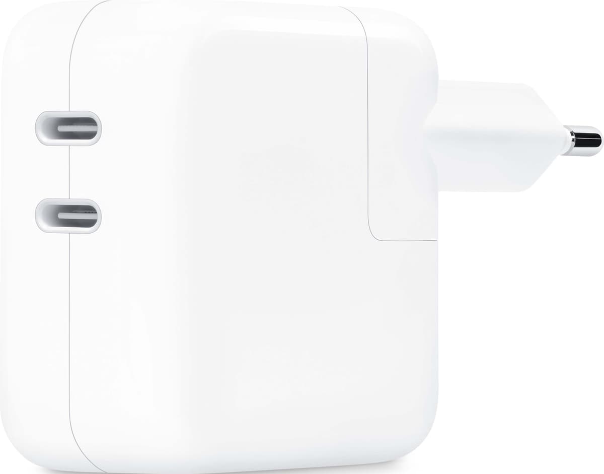 Få strøm på med Apple 35W Dual USB-C strømadapteren. De dobbelte USB-C-porte kan hurtigt oplade to enheder på én gang og sikre, at dit Apple-udstyr altid er klar. Adapteren giver op til 35 W strøm og er kompatibel med de fleste Apple-enheder.Læs mere om produktet