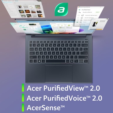 Acer Aspire 14 AI Snap-X1/32/1024/IPS 14" Copilot+ PC byder på en kraftfuld Snapdragon X CPU, 32GB RAM, 1TB SSD, 120Hz IPS-skærm og Wi-Fi 7 i et elegant, bærbart design til forbedret produktivitet og underholdning.Læs mere om produktet
