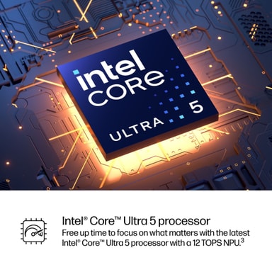 • Intel Core™ Ultra 5 225U (op til 4,8 GHz med Intel Turbo Boost Technology, 12 MB L3-cache, 12 kerner, 14 tråde)