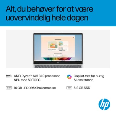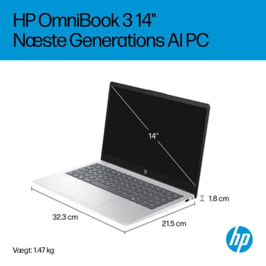 Denne HP OmniBook 3 14" bærbare computer leverer kraftfuld AMD Ryzen™ AI 5-ydeevne samt imponerende visuals på den Full HD IPS-skærm. Boost din produktivitet og hold styr på dine opgaver i mange timer takket være det effektive batteri.Læs mere om produktet