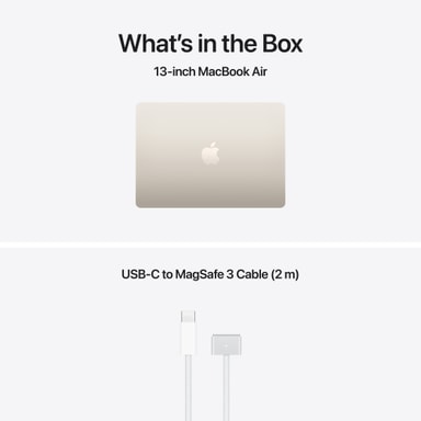 - STRØMFORSYNINGER – Bemærk: MacBook Air (15") leveres med et USB-C til MagSafe 3-opladerkabel, men der følger ingen strømforsyning med. For at oplade enheden skal du bruge en USB-C-strømforsyning eller en anden USB PD-strømkilde, der kan levere 35 W eller højere. Apple anbefaler at bruge Apple USB-C-strømforsyningen på 35 W med to USB-C-porte til denne Mac for at få optimal opladning eller USB-C-strømforsyningen på 70 W for at udnytte funktionen til hurtig opladning (op til 50 % opladet på 35 minutter)6