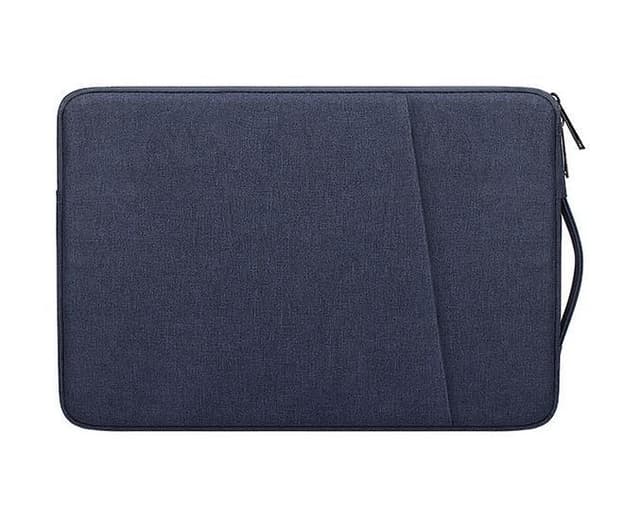 Fleksibelt håndtag: Håndtaget sidder på den ene korte side af posen og trækkes lidt ud, når du trækker i det. Den bærbare computer indsættes fra den lange side, og åbningen lukkes derefter igen med en lynlås.