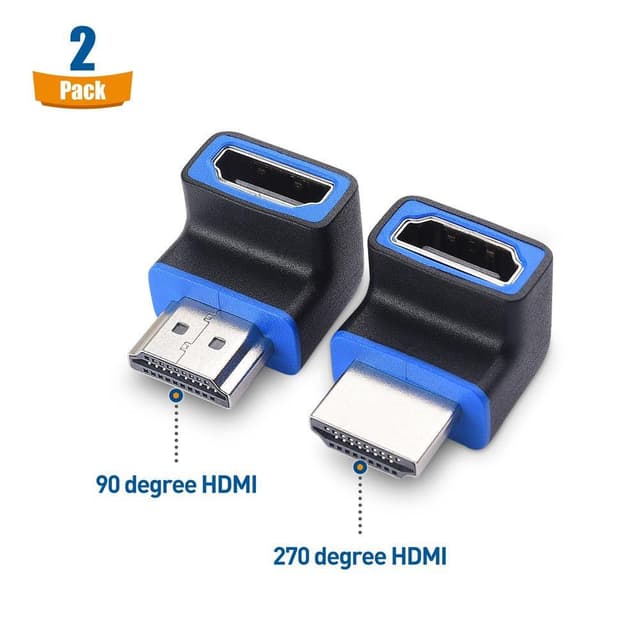 Med denne 2-pakke vinklede HDMI 2.1-adaptere kan du tilslutte HDMI-kabler selv på svært tilgængelige eller trange steder. Brug adapterne til at forhindre dit kabel i at ramme væggen bag dit tv, eller gør det nemmere at få adgang til HDMI-porten ved at vinkle det opad.