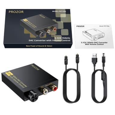 DAC-konverteren understøtter 192kHz/24Bit lyd med optisk og koaksial indgang, der konverterer til L/R RCA-udgange for tabsfri lyd. Den understøtter 5.1CH DTS Dolby AC3-afkodning for en fordybende lydoplevelse. Med indbygget volumenkontrol og guldbelagte stik sikres højkvalitetsforbindelser. Den er kompatibel med en række enheder såsom Blu-Ray-afspillere, HDTV'er og spillekonsoller.