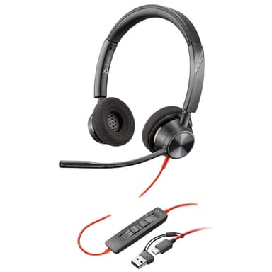 Dette HP Poly Blackwire 3320 headset leverer plug and play USB-C/USB-A tilslutning, polstrede puder for komfort, dynamisk EQ for fyldig lyd og nem styring via Poly Lens appen, ideelt til arbejdspladser, der bruger PC eller Mac.Læs mere om produktet