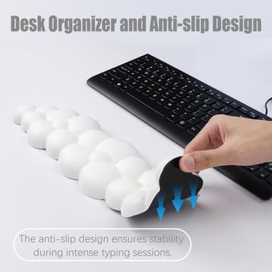 Håndledsstøtte med memory-foam: Fyldet af blødt memory-foam giver god dæmpning og optimal støtte til dine håndled, mens du arbejder ved computeren. Memory-foamet tilpasser sig den naturlige form på dine håndled, hvilket giver stor komfort.
