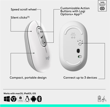 Køb Logitech POP-musen og få en lydløs, letvægts følgesvend til ethvert job. Den optiske sensor på 4.000 DPI ledsages af et SmartWheel, FLOW-tilslutning til flere enheder og en enkel Bluetooth-forbindelse med en batterilevetid på op til 2 år.Læs mere om produktet