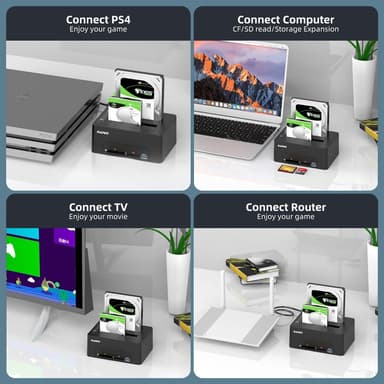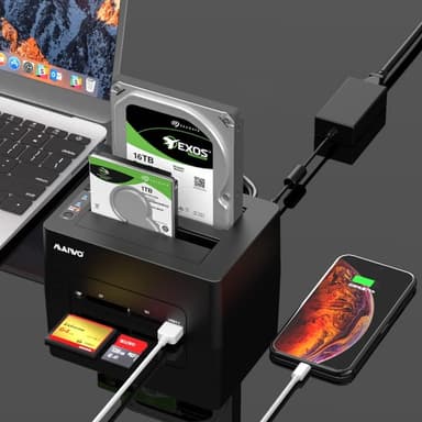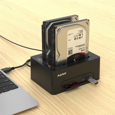 Maiwo K3082CR USB C 3.1 Gen1 5Gbps Docking Station, 2 SATA HDD SDD 14TB med støtte til uasp, støtte til Sataii 6Gbps, kloning, kortlæser, USB-hubLæs mere om produktet