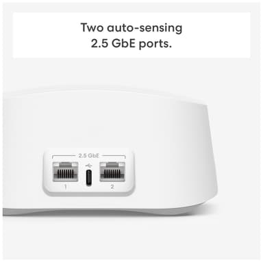 eero 7 BE1800 WiFi 7 mesh-routeren leverer pålidelig 2,5 Gbps kablet hastighed og 1,8 Gbps trådløs hastighed med op til 190 m2 dækning. TrueMesh-teknologien eliminerer døde zoner og sikrer stabil forbindelse i alle rum.Læs mere om produktet