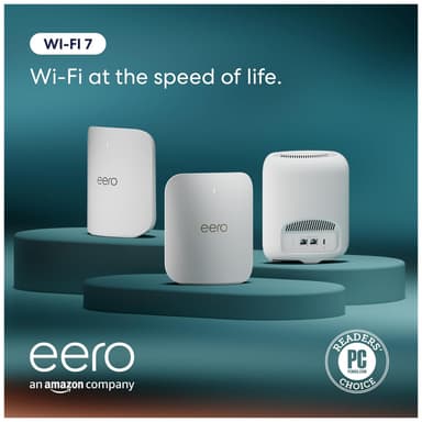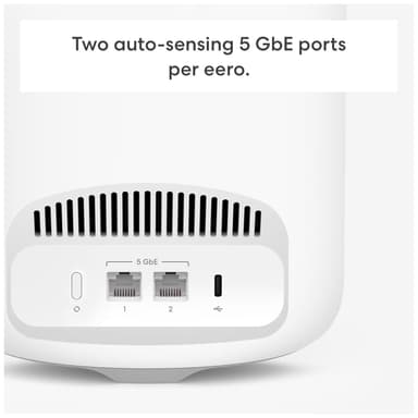 eero Pro 7 BE3900 WiFi 7 mesh-routeren leverer pålidelig 5 Gbps kablet hastighed og 3,9 Gbps trådløs hastighed med op til 190 m2 dækning. TrueMesh-teknologien eliminerer døde zoner for at sikre stabil forbindelse i alle rum.Læs mere om produktet