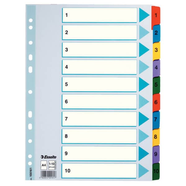 ESSELTE Register Mylar A4/1-10 Multifarvet