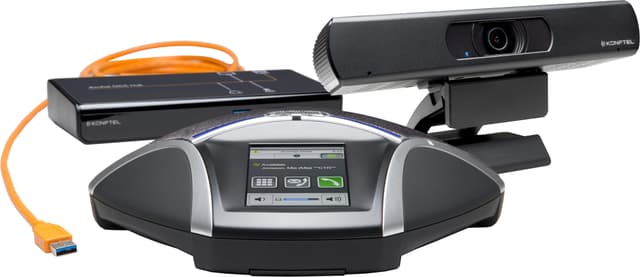 Med denne hub kan du slutte højttalertelefonen, webkameraet og skærmen til den og derefter tilslutte hub`en med et kabel til din bærbare computer. Dette modvirker kabelføringer og understøtter BYOC (medbring din egen computer), da alt hvad du behøver for at bruge konferencepakken er en bærbar computer (enhver), der opretter forbindelse via et USB-kabel.