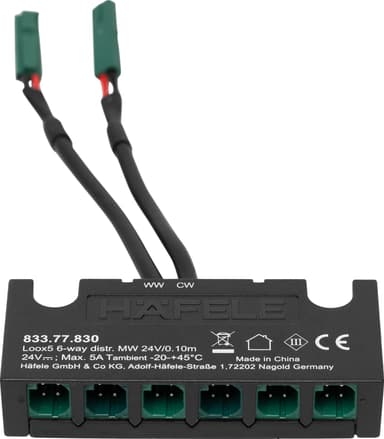 En Loox5 MultiWhite CableHub er en vigtig del af din MultiWhite-lysopsætning. Hubben har 6 porte til 6 MultiWhite spotlys eller lysstriber. Hvis din lysopsætning indeholder flere end 6 lys, kræves der yderligere MultiWhite-hubs.Læs mere om produktet