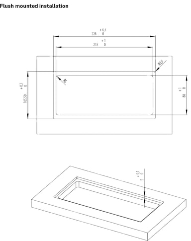 Stikkontakten kan installeres over skuffer eller i indbyggede enheder. Når den ikke er i brug, kan den flippes tilbage.