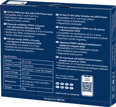 Denne Arctic Case PWM blæserhub tilsluttes nemt til dit bundkort med ét SATA-strømkabel og giver 10 porte til ekstra PWM-blæsere, hvilket giver synkroniseret blæserstyring og enkel kabelhåndtering.Læs mere om produktet