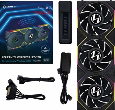 Lian Li UNI TL Wireless LCD 120mm PC-blæser (3-pak, sort)