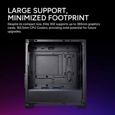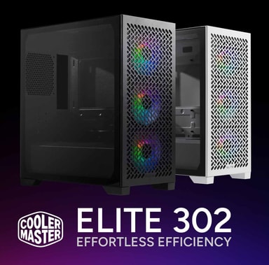 Cooler Master Elite 302 PC-kabinettet er et mini-tower kabinet til microATX builds. Det har et værktøjsfrit magnetisk frontpanel for nem adgang og leveres med tre 120mm blæsere, der holder dit system køligt og sikrer problemfri drift.Læs mere om produktet