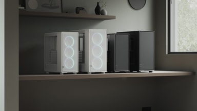 Fractal Epoch XL Solid har en mesh-front og leveres med tre Momentum 12 blæsere for kraftig og effektiv luftgennemstrømning. Det understøtter også radiatorer op til 360 mm til avancerede køleløsninger.