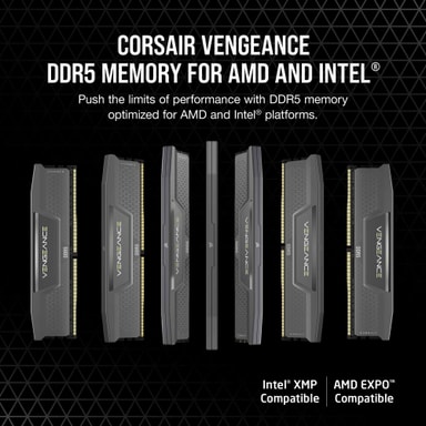 Corsair Vengeance DDR5 RAM 16GB (2x8GB) 5.200MT/s CL40 sikrer responsiv ydeevne med 5.200MT/S. Med sin CL40-timing, Intel XMP og AMD EXPO-setup kan de køre med 1.40V, hvilket gør dem til en nem opgradering til multitasking og indlæsningtider.Læs mere om produktet