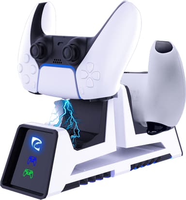 Piranha x GhostGear PlayStation universal oplader er en dual-controller oplader, der er kompatibel med PS5 og PS4. Den har magnetiske induktionspuder og LED-indikatorer til opladningsstatus, så du kan strømline dit gaming-setup.Læs mere om produktet