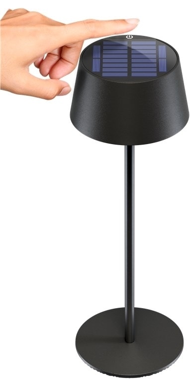 Goobay Trådlös LED-bordslampa med solcell, svart med touchkontroll, 150 lm, varmvit (3000 K), steglöst dimbar