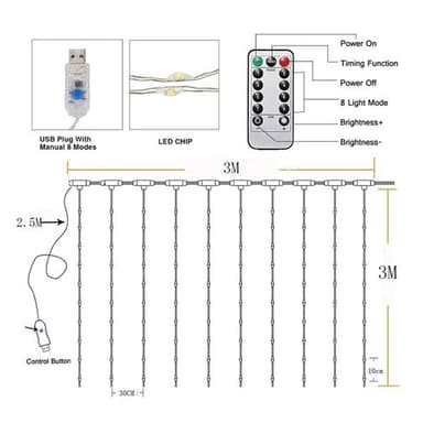 LED-gardin 3 x 3 meter - FarveLæs mere om produktet