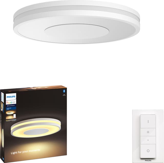 Med dette Philips Hue Being loftslys 3261031P6 kan du indstille farvetemperaturen med dæmpeknappen eller styre lyset med Philips Hue-appen til din smartphone for at skabe den rette stemning i dit hjem.Læs mere om produktet