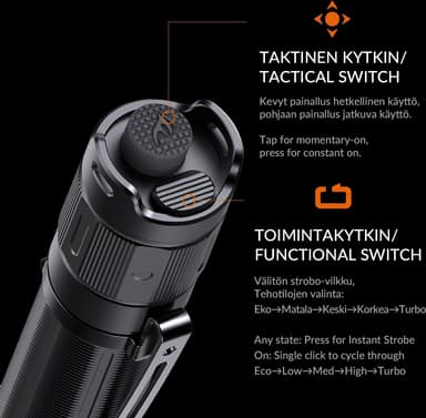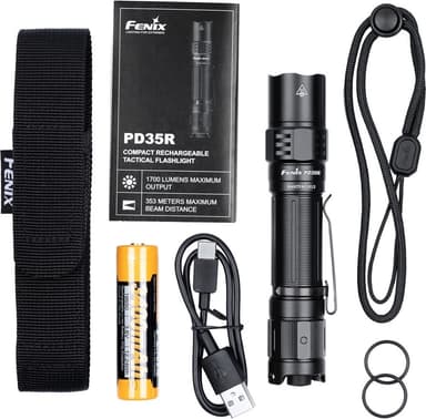 Fenix PD35R er en kompakt og kraftfuld genopladelig lommelygte, som erstatter den populære UC35 V2.0. Blændende max. 1700 lumen lysstyrke og en langtrækkende max. pD35R er den foretrukne kompakte lommelygte med en lysstråle, der rækker op til 353 meter. PD35R er virkelig hurtig og enkel at bruge med to trykknapper på toppen. Den store knap tænder lygten, og den lille knap skifter mellem forskellige lysstyrker. PD35R oplades via et USB C-opladningsstik efter EU-standard. Fenix PD35R er designet til den krævende hobbyist, myndigheder og vildmarks- og campingbrug, når du har brug for en meget kompakt, holdbar og pålidelig lommelygte uden at gå på kompromis med ydeevnen.