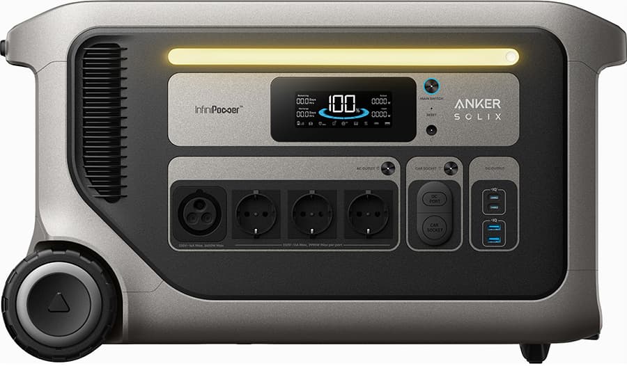 Med en kraftfuld effekt på 3600W leverer Anker Solix F3000 strømstationen A1782 energi i 12 timer til 2 dage. Dens 2400W dual-voltage solinput sikrer hurtig, miljøvenlig opladning, mens LFP-batterierne giver et årti med pålidelig ydeevne.Læs mere om produktet