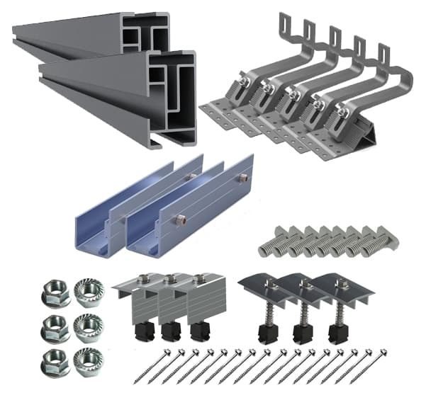 Pakkeløsning Pakken indeholder fastgørelsesmateriale fra Bisols EasyMount-system, der er beregnet til skråtag med tegl, og indeholder det, du skal bruge for at montere 8 solpaneler i træk. Se billede for eksempel af opsætning. Tagkrogen i dette system har tredobbelt justering og passer til de fleste tegltage. Hvis du ændrer konfigurationen, f.eks. ved at det er et rør, kvist eller lignende vil dette ændre på hvor meget fastgørelsesmateriale du skal bruge. Tallet i pakken er taget fra Bisol og er en generel beregning.