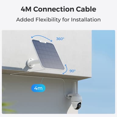 Reolink Solar Panel 2 solcellepanelet giver pålidelig solenergi til Reolink batterikameraer med et 360° justerbart beslag, 4M kabel og IP65 vejrbestandighed, hvilket sikrer nem installation og ro i sindet.Læs mere om produktet