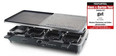 - Amount of pans: 8- Non stick coating- Adjustable thermostat - Size of cooking surface 45,8x22,9cm- Die cast aluminum grill plate- Half stone and half grill baking plate- Spatula(s) 8 wood- Indicator light- Conforms to GS A13 standard- Anti-slip feeLæs mere om produktet