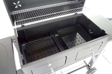 Sammenklappelige sideborde gør, at grillen fylder minimalt ved opbevaring, mens den ekstra store grillflade giver dig god plads til at imponere dine gæster. Den smarte påfyldningsluge gør det nemt at tilføje kul, briketter og røgspåner uden at forstyrre tilberedningen. Og når grillen er slut, gør den bekvemt designede asketømningsprocedure livet lettere. Træk bare bakken ud og tøm asken uden besvær. Landmann Kolgrillsvagn XXL er ikke bare en grill, den er din partner i at skabe mindeværdige grilloplevelser!