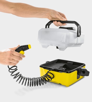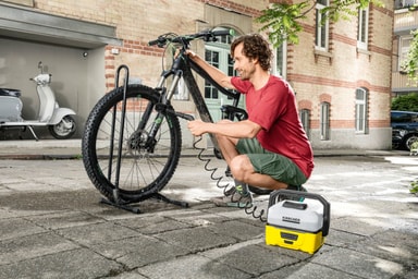 Hold din cykel, din terrasse, havemøblerne eller gummistøvlerne rene, selv når de har stået ude i forskellige vejrforhold. Kärcher transportable udendørsrenser OC3 klarer opgaven. Den kompakte størrelse og praktiske opbevaring tillader dig at have renseren med i bilen eller i campingvognen, og med en 4 liters vandtank og 5 bars tryk er du sikker på, at renseren er velegnet til forskellige situationer. Hvis du skifter til et lettere tryk, kan du endda vaske hunden – eller bare køle den af på en varm dag.