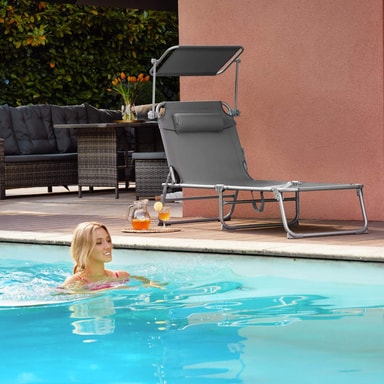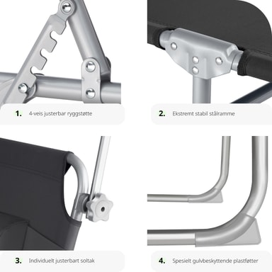 De 4-positions-justerbare ryglæn tillader dig at tilpasse din solseng efter dine præferencer, fra oprejst læsning til fuld liggeposition til en lur under solen. Uanset om du foretrækker at ligge fladt eller sidde op, giver denne fleksibilitet dig kontrol over din komfortoplevelse. Den aftagelige hynde til hovedet tilføjer et ekstra lag af luksus, så du kan hvile med optimal støtte.
