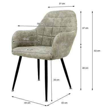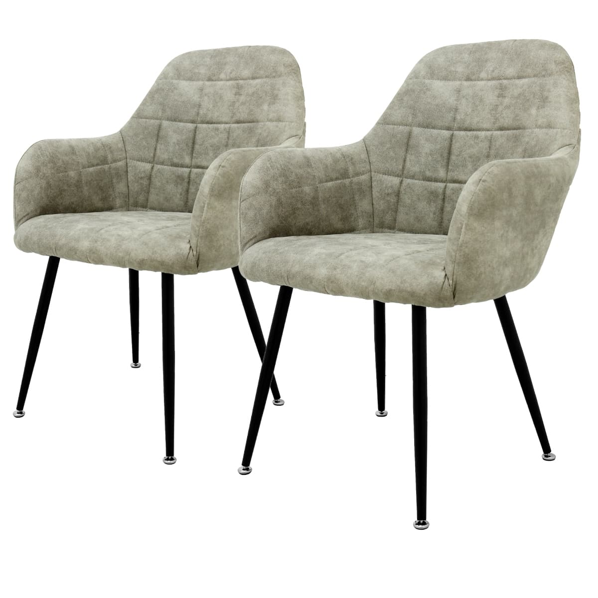 ECD Germany serie 2 spisebordsstole spisebordsstol ryg og armlæn, oliven, mikrolædersæde, metalben, køkkenstoleLæs mere om produktet