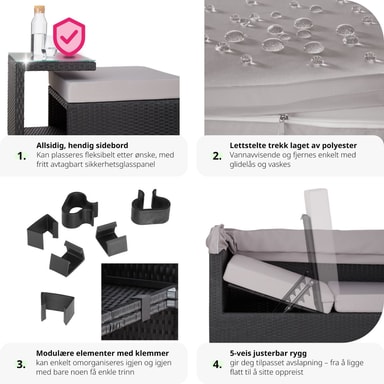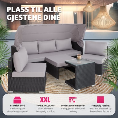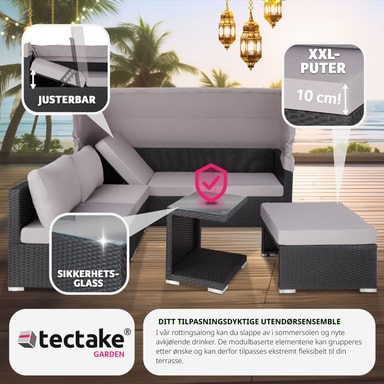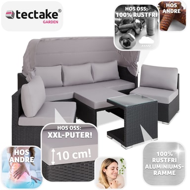 Det indbydende Polyrattan loungesæt fra tectake med superbløde hynder, foldbar kaleche og justerbart ryglæn byder på den bedste hvile.Læs mere om produktet