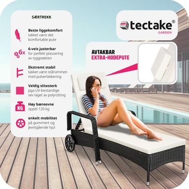 Havemøbler Rattan Lounger - 6-fach verstellbar, UV-beständig