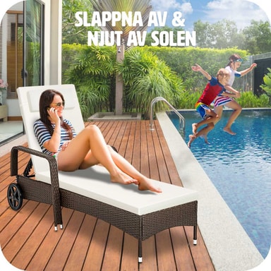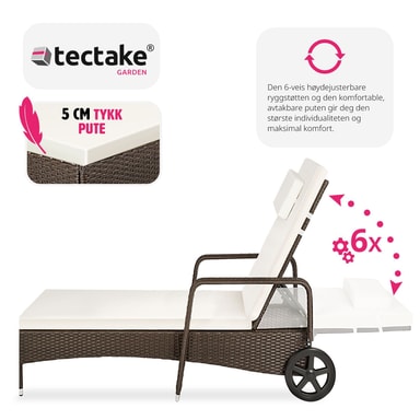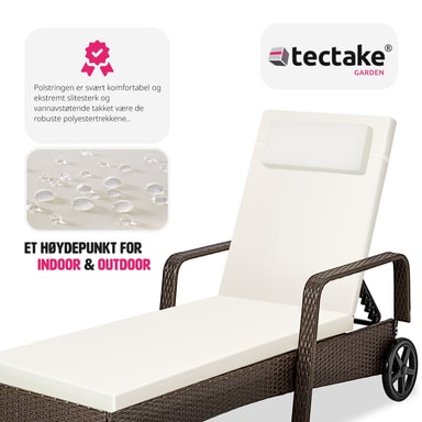 Polyrattan materialet gør loungeren ikke kun stilfuld, men også utroligt holdbar. Det fine flettede design er let at rengøre og kræver minimal vedligeholdelse, hvilket betyder, at dine havemøbler altid vil se nye og friske ud. De gummierede hjul og de gribende armlæn gør det let at flytte loungeren rundt i haven, på terrassen eller ved poolen.