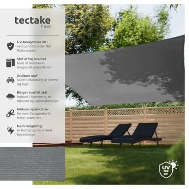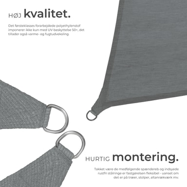 Med dette praktiske solsejl skaber du en helt speciel skyggegiver i haven, på terrassen eller altanen. Vores solsejl egner sig ikke blot til derhjemme, det kan f.eks.Læs mere om produktet